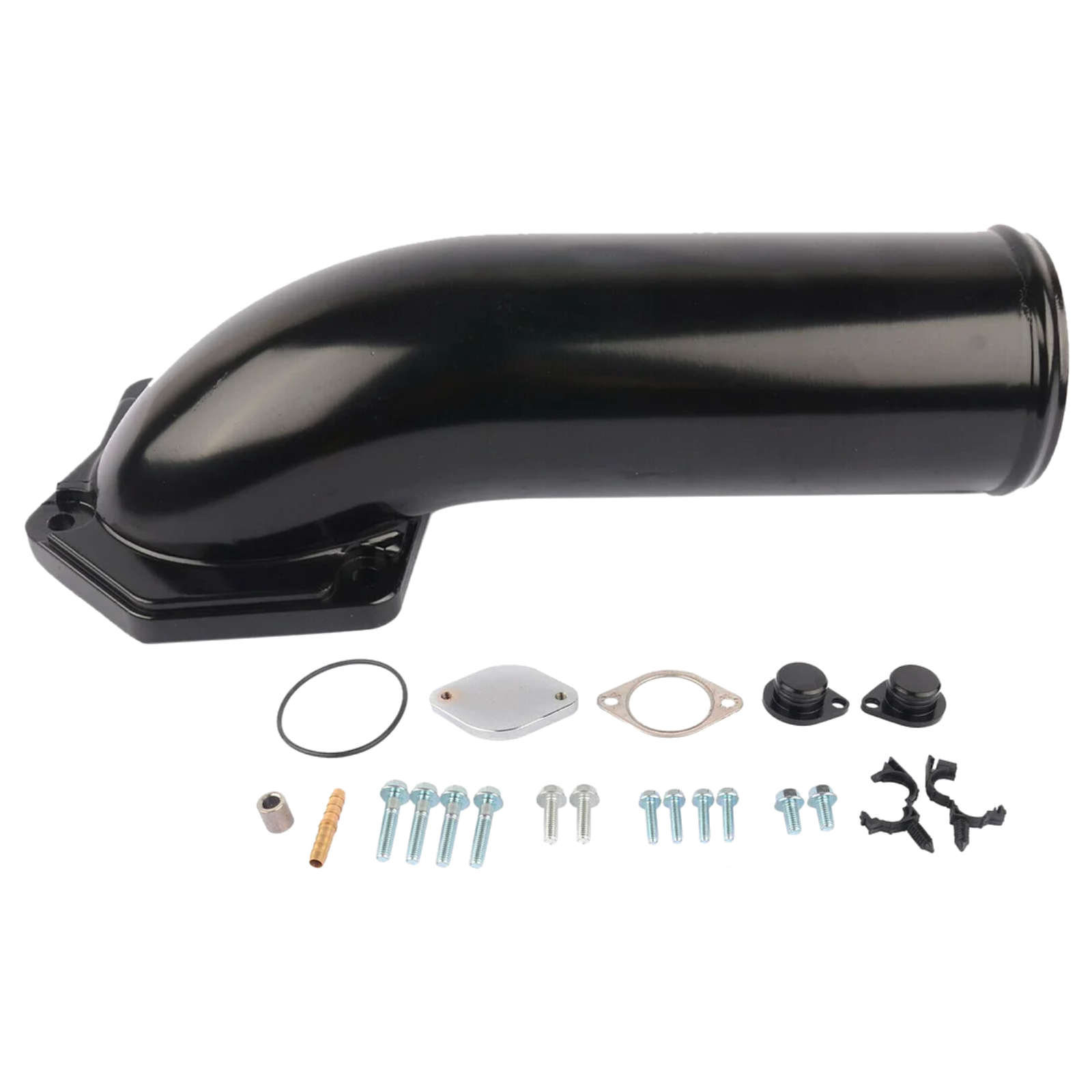 This EGR/Cooler delete kit will simplify your 6.4L Ford Powerstroke engine. You won't have to deal with the EGR valve sticking anymore or the possibility of a blown head gasket due to a leaking EGR cooler. Also, the EC64 will help lower engine coolant temperatures and increase overall reliability!