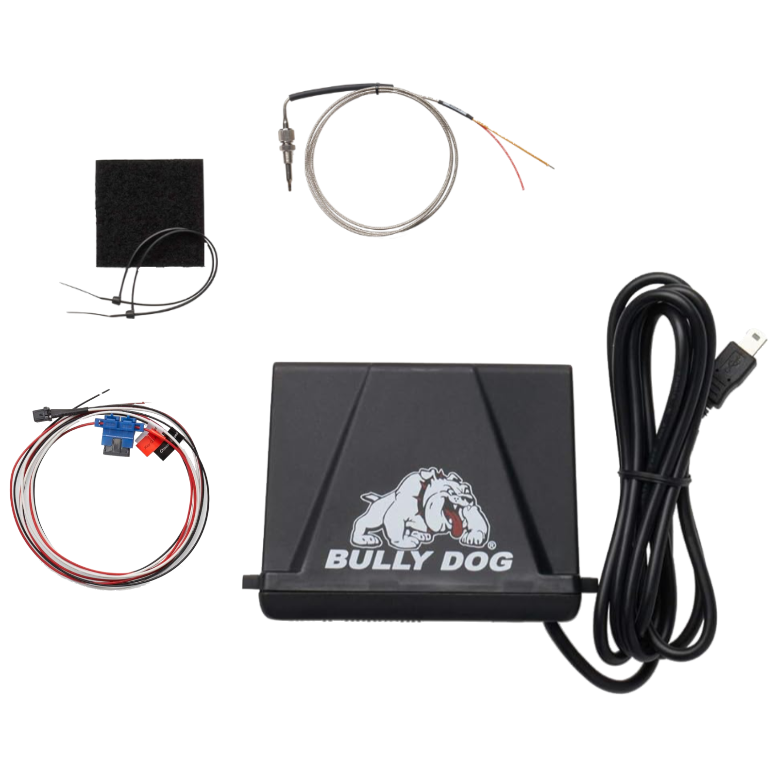The Pyrometer Probe Kit comes with all the parts and pieces necessary to acquire exhaust gas temperatures to display on the Mini Maxx V1 & V2, the Watch Dog, or the PMT (PMT comes with all parts seen above). This kit includes one pyrometer probe which will capture one temperature reading along the exhaust stream. The PCH board, the electronic dock for the pyrometer probe, can accommodate up to two pyrometer probes offering the ability to capture exhaust gas temperatures for two different locations along the exhaust stream. The Bully Dog devices that utilize this kit all have the programming ability to display up to two pyrometer temperature readings simultaneously. Installing a Pyrometer Probe Kit along with a Mini Maxx, unlocks the safety defueling feature for defueling based on exhaust gas temperatures.